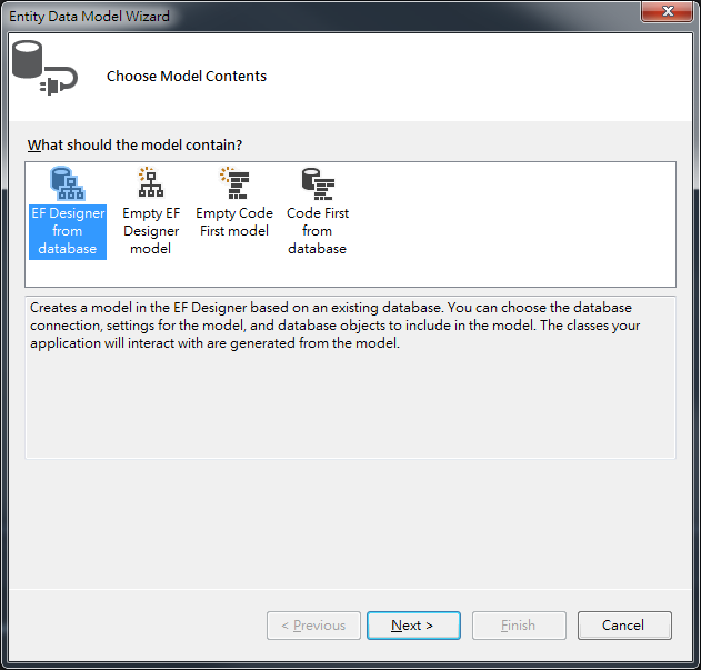Step 13. 選擇 EF Desginer from database, 點選Next...