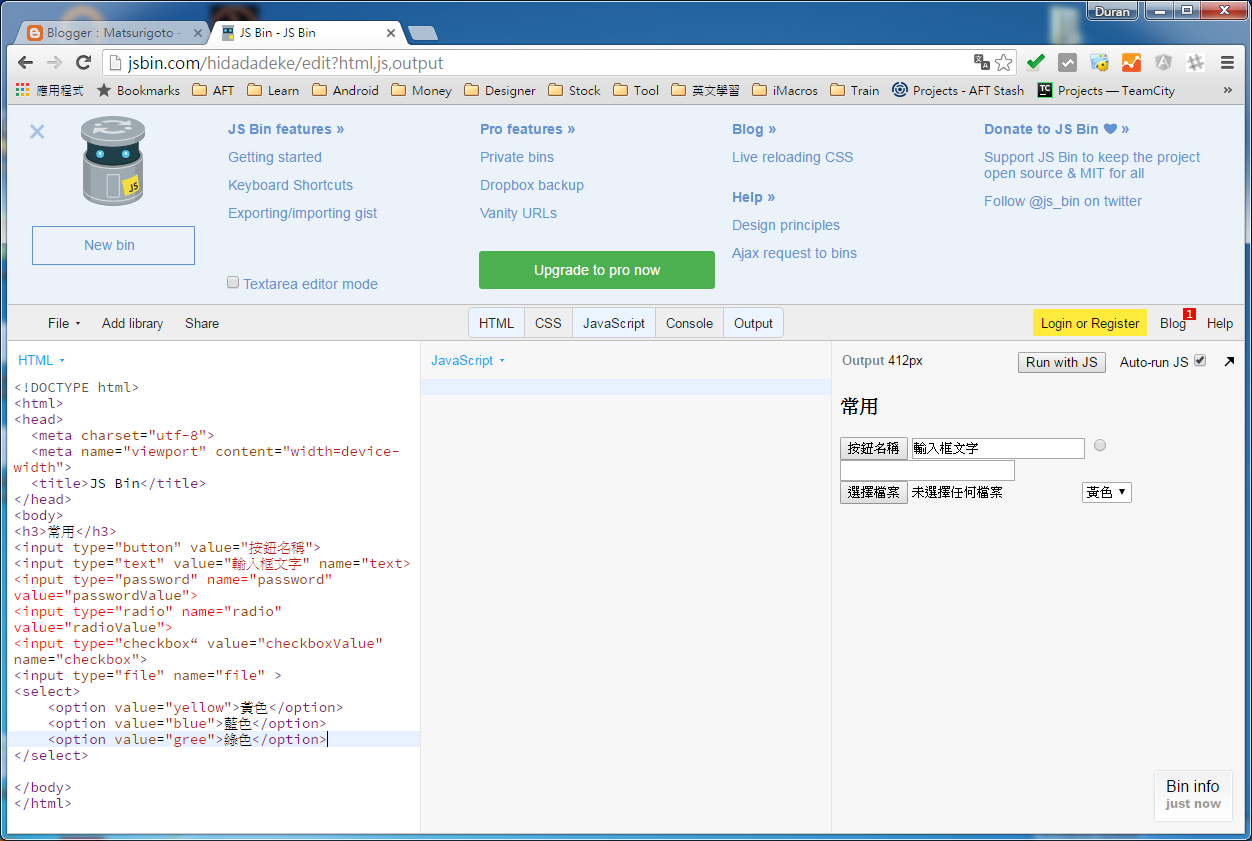 或者使用Jsbin網站進行練習 : http://jsbin.com/?html,js,output