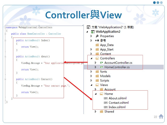 Controllers\HomeController 裡面的 About => Views\Home\About.cshtml