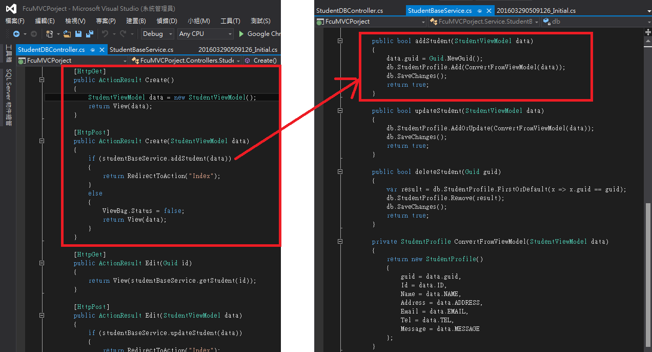 - Create:新增學生資料 (兩個Action,進入畫面與送出處理)
