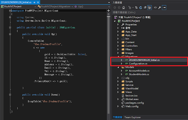使用Code First建立資料庫產生的Db Migration。