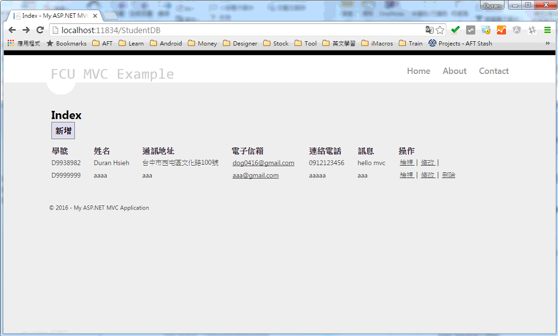 - Edit:編輯學生資料 (兩個Action,進入畫面與送出處理)