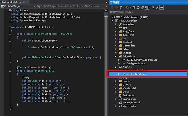 本篇範例採用Code First,故需要建立相關物件與對應的Context