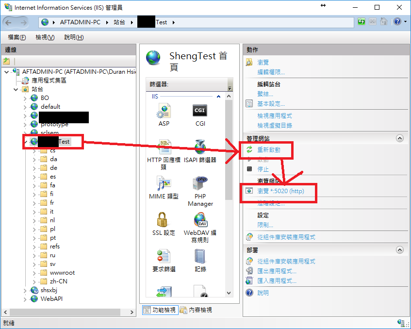 步驟 11. 於 IIS管理員重新啟動網站並且瀏覽網站。