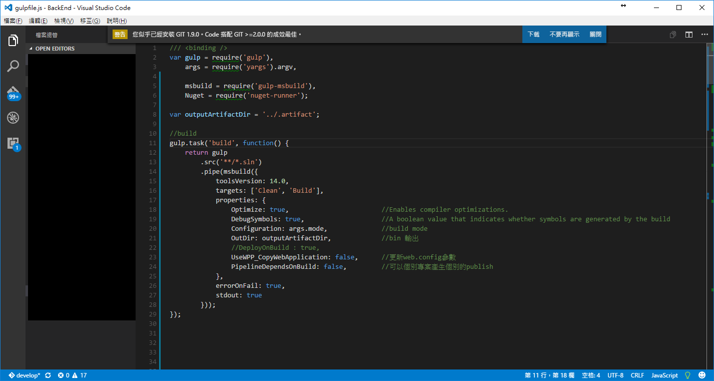 4.透過 Gulp:gulp-msbuild 進行 Build project