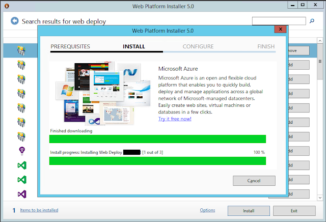 Step 3. 搜尋框內輸入Web Deploy進行搜尋,加入 Web Deploy 3.6 , 點選 install 按鈕