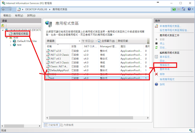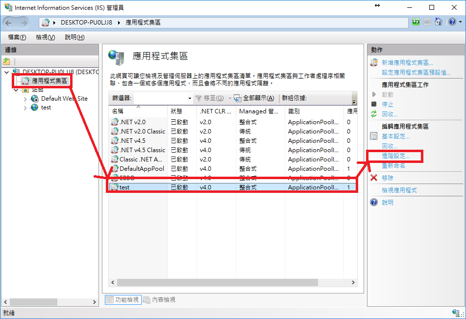 Step 1. 選擇應用程式集區 > 選擇應用程式 > 進階設定
