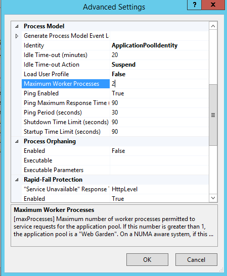 Step 2. 將 Maximum worker processes 調整成 2,點選OK。