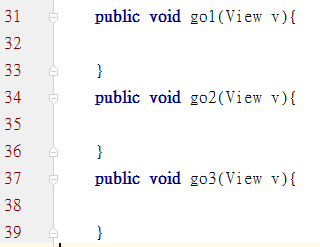 為三個Button元件分別設定onclick屬性為go1、go2與go3,如下圖: