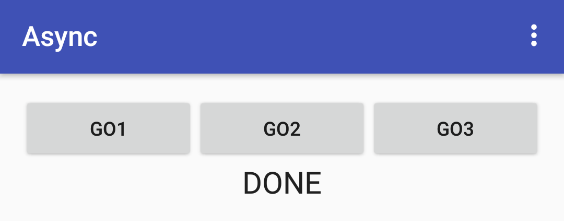 執行後,按下GO1按鈕,等待五秒後,TextView文字會改變為DONE,如下圖: