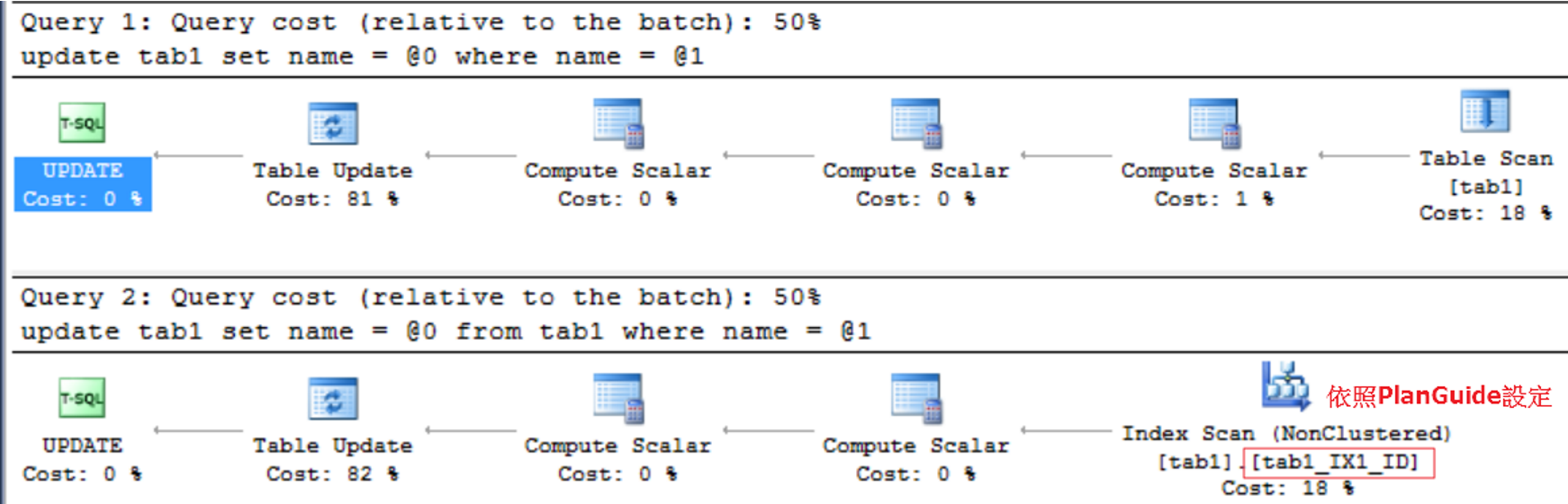 --測試UPDATE 指令使用TABLE HINT 建立Plan Guide