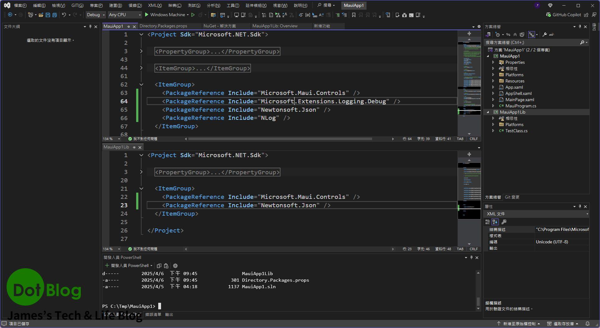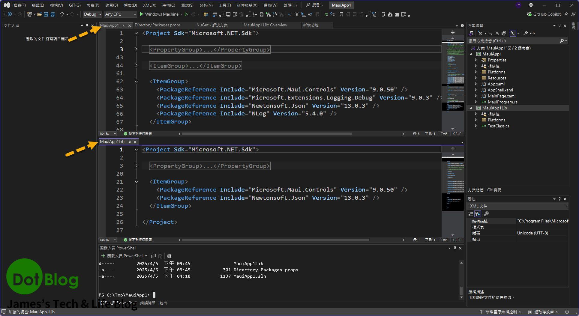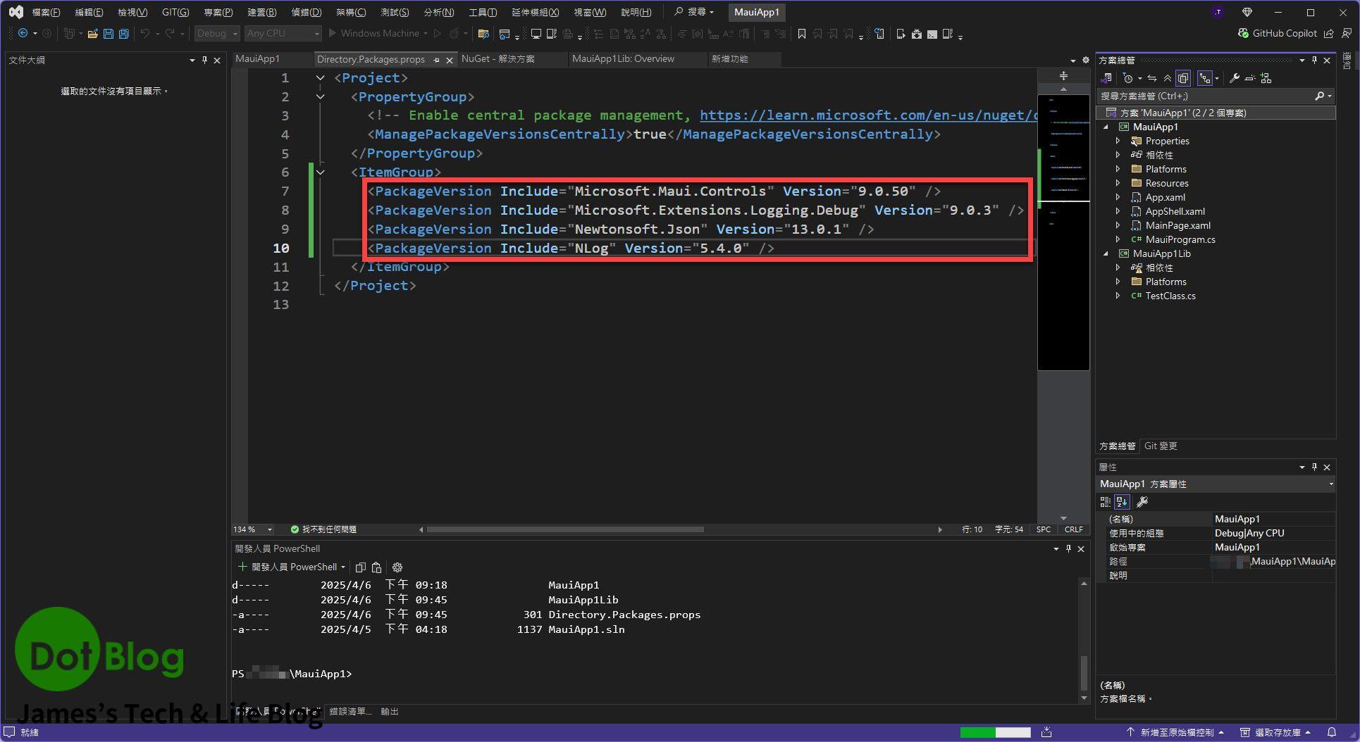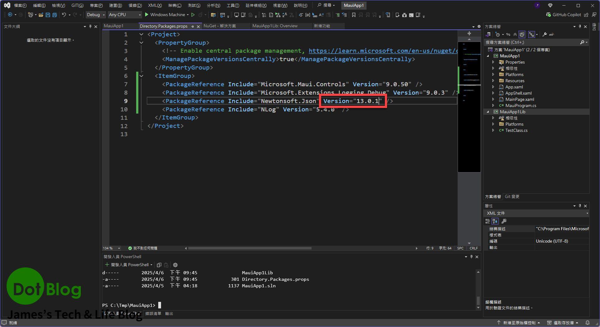 開啟該 "Directory.Packages.props" 檔案觀看: