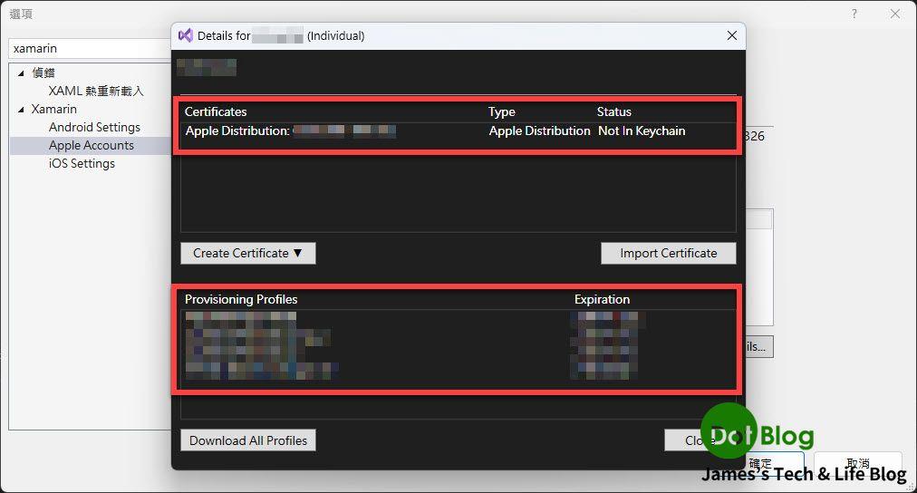 Visual Studio 存取 Apple Developer Account 但憑證卻不在 Keychain 當中