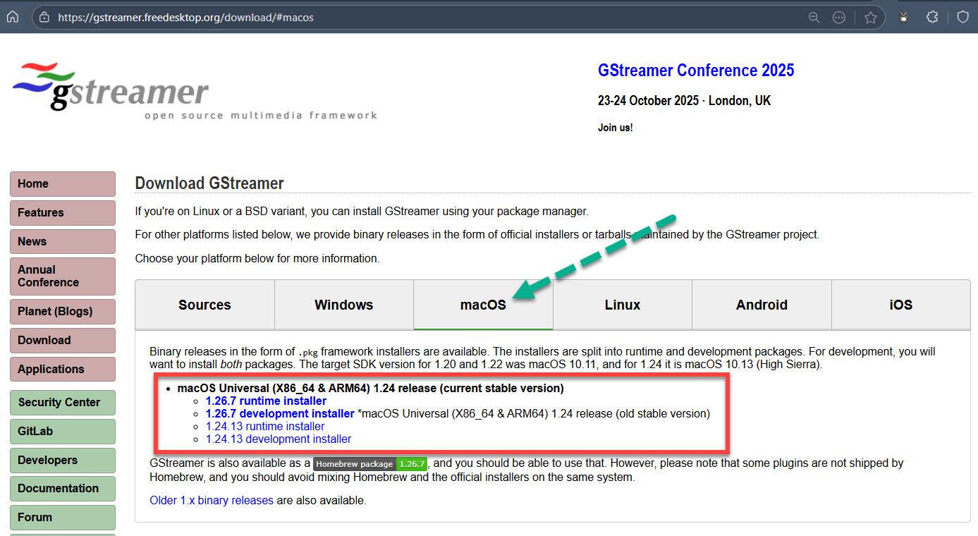 GStreamer 官網有提供 macOS 專用的 *.pkg 下載: