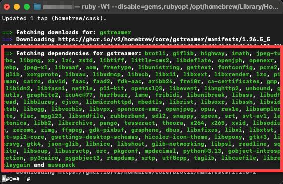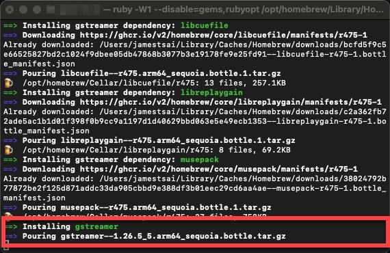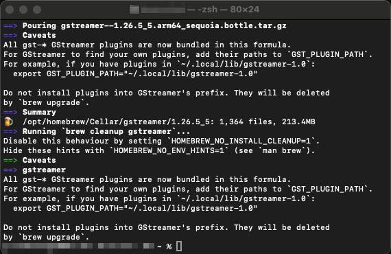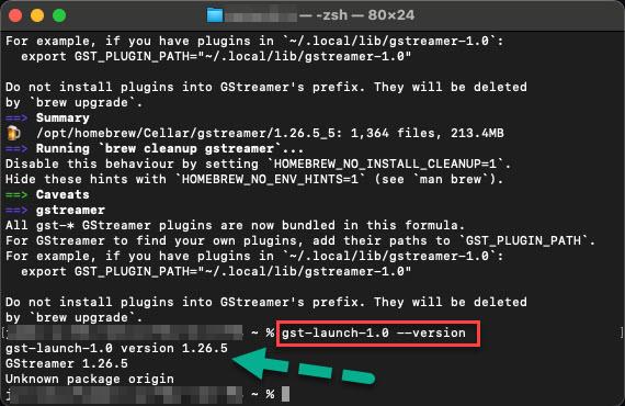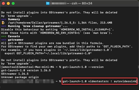 出現對應的回應,就代表透過 brew 安裝 GStreamer 完成!