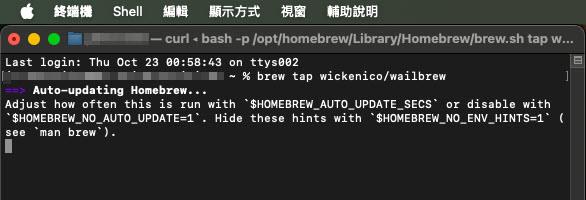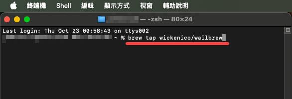 直接在 "Terminal (終端機)" 當中輸入 "brew tap wickenico/wailbrew":