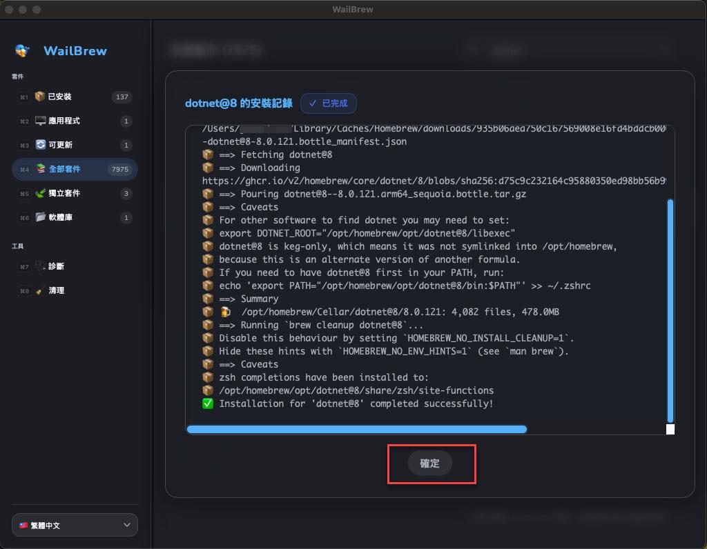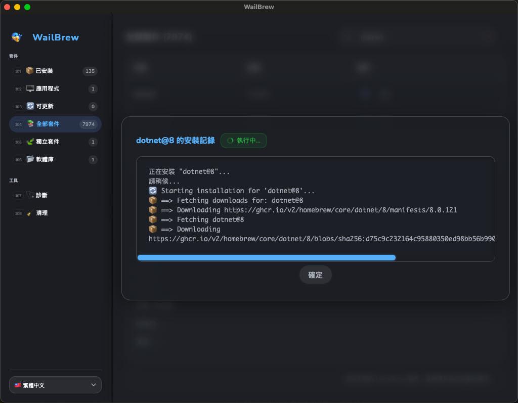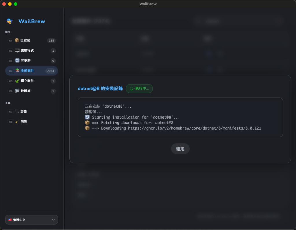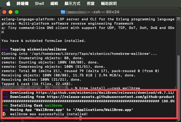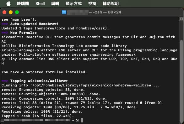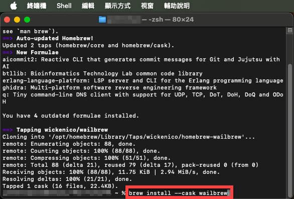 接著就可以繼續輸入 "brew install --cask wailbrew":