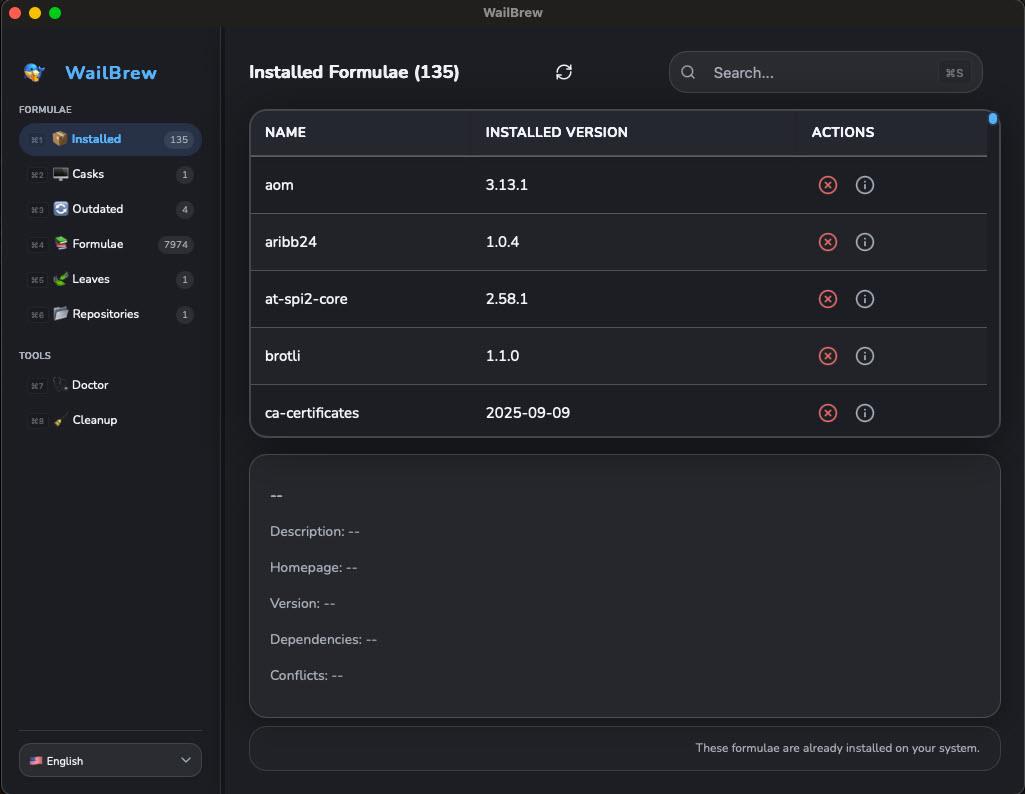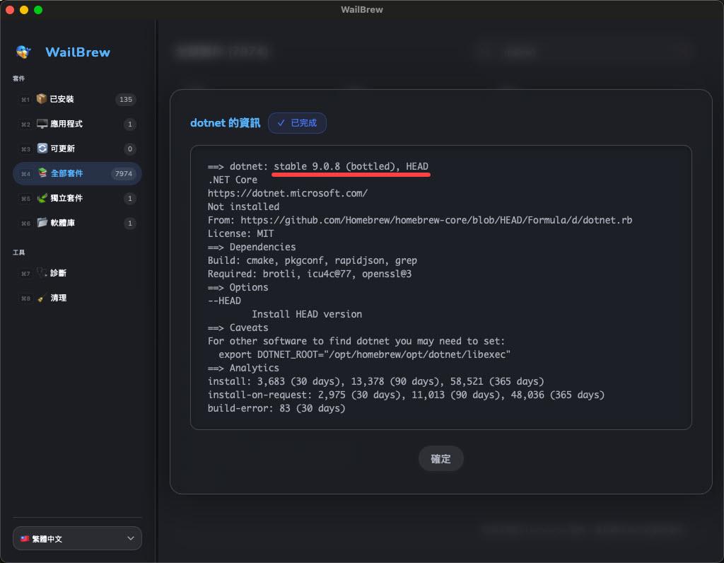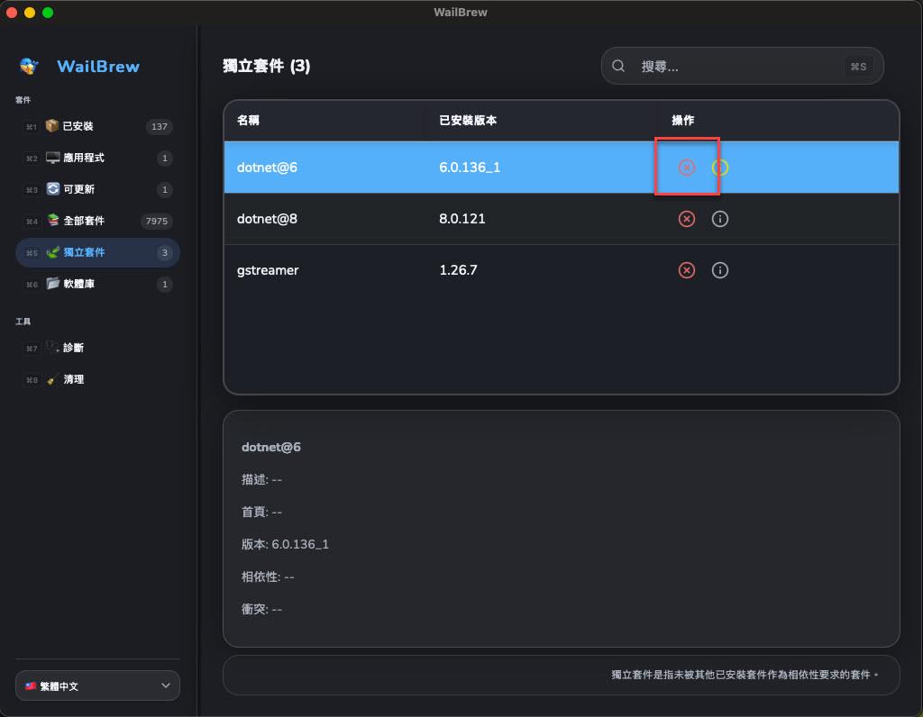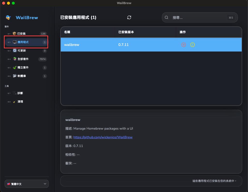 如果是對於 brew CLI 設計比較不上手的捧友,挺推薦透過這套 WailBrew 的 GUI 設計來操作 brew 唷!