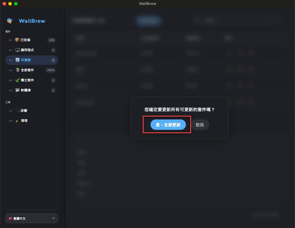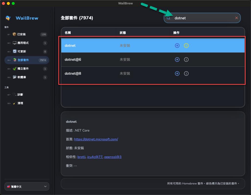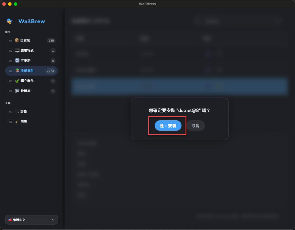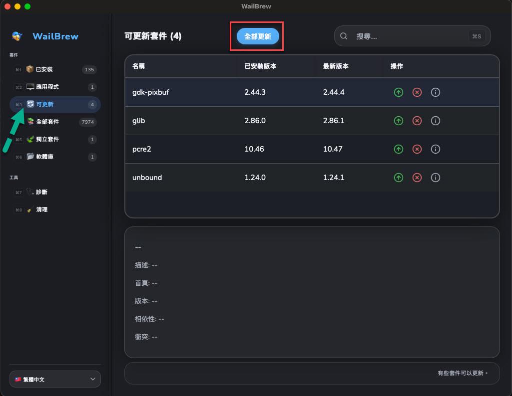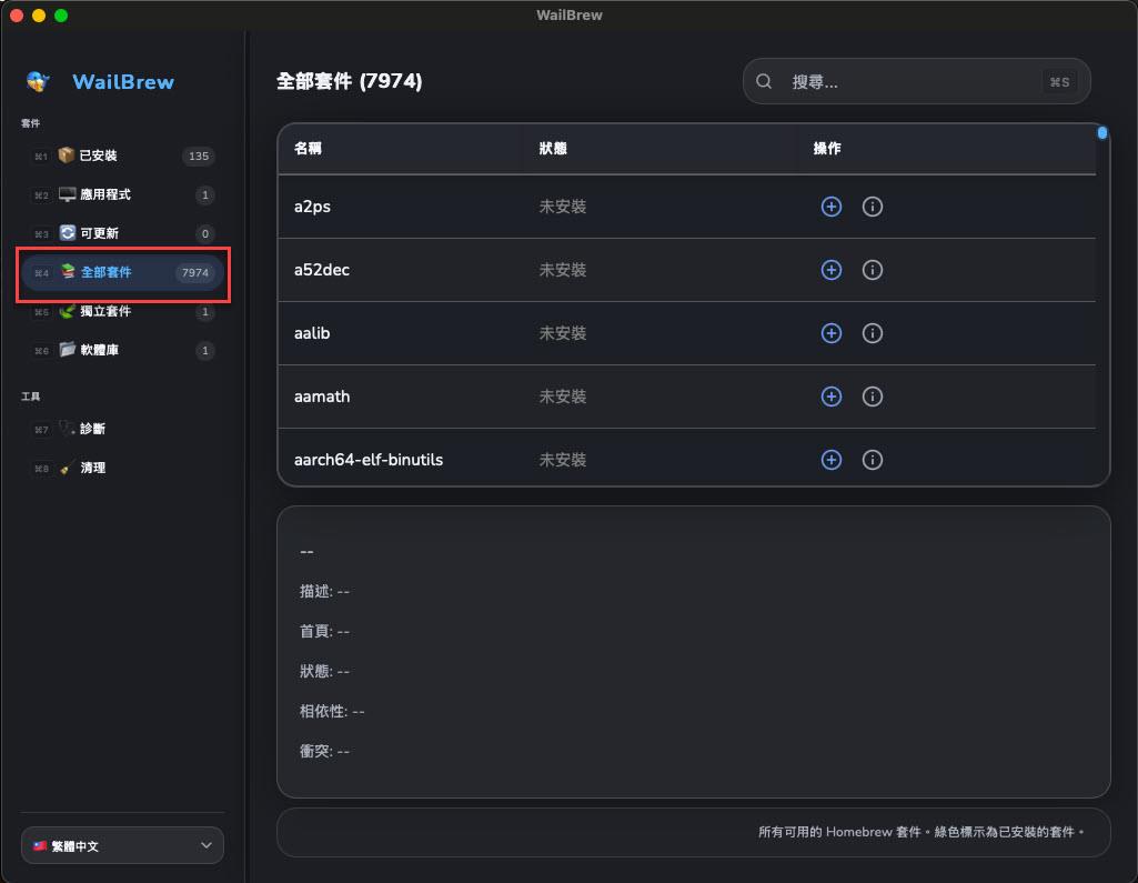 而如果想透過 WailBrew 安裝所需的套件的話,點選 "全部套件":