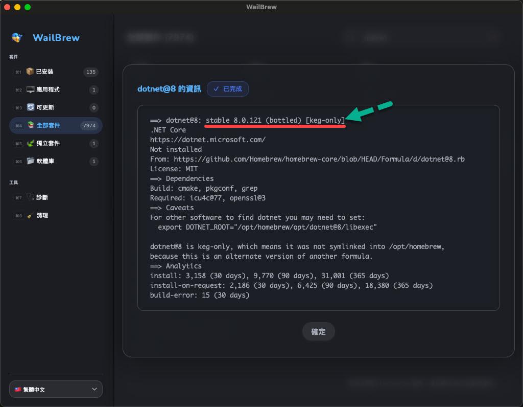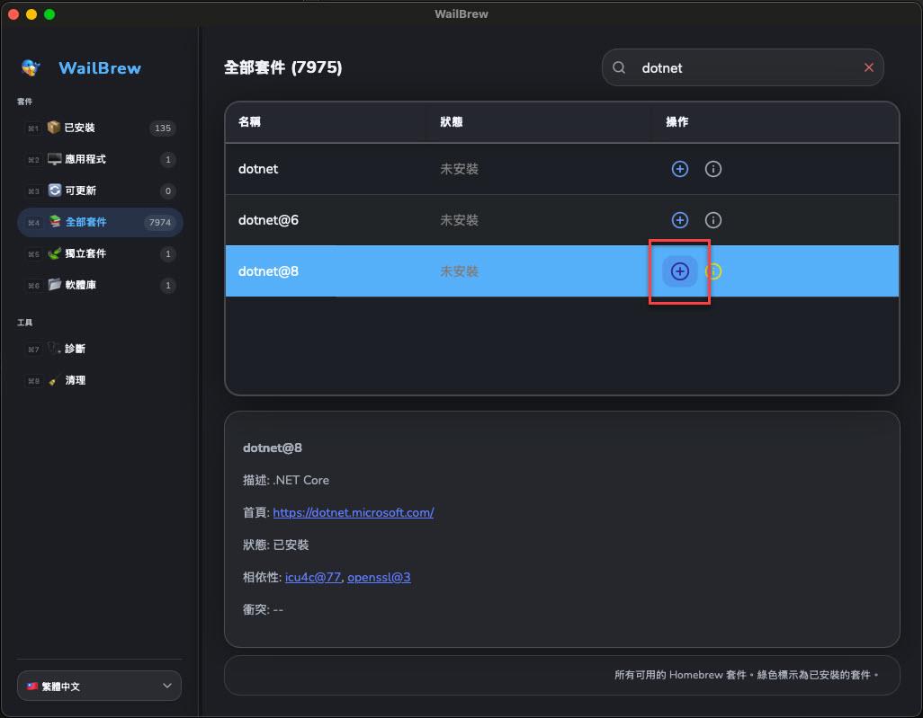 如果不是很能接受 Homebrew (或稱 brew) 只能在 "Terminal (終端機)" 當中透過指令操作 (CLI) 的話,可以試試看 WailBrew 這套軟體。
