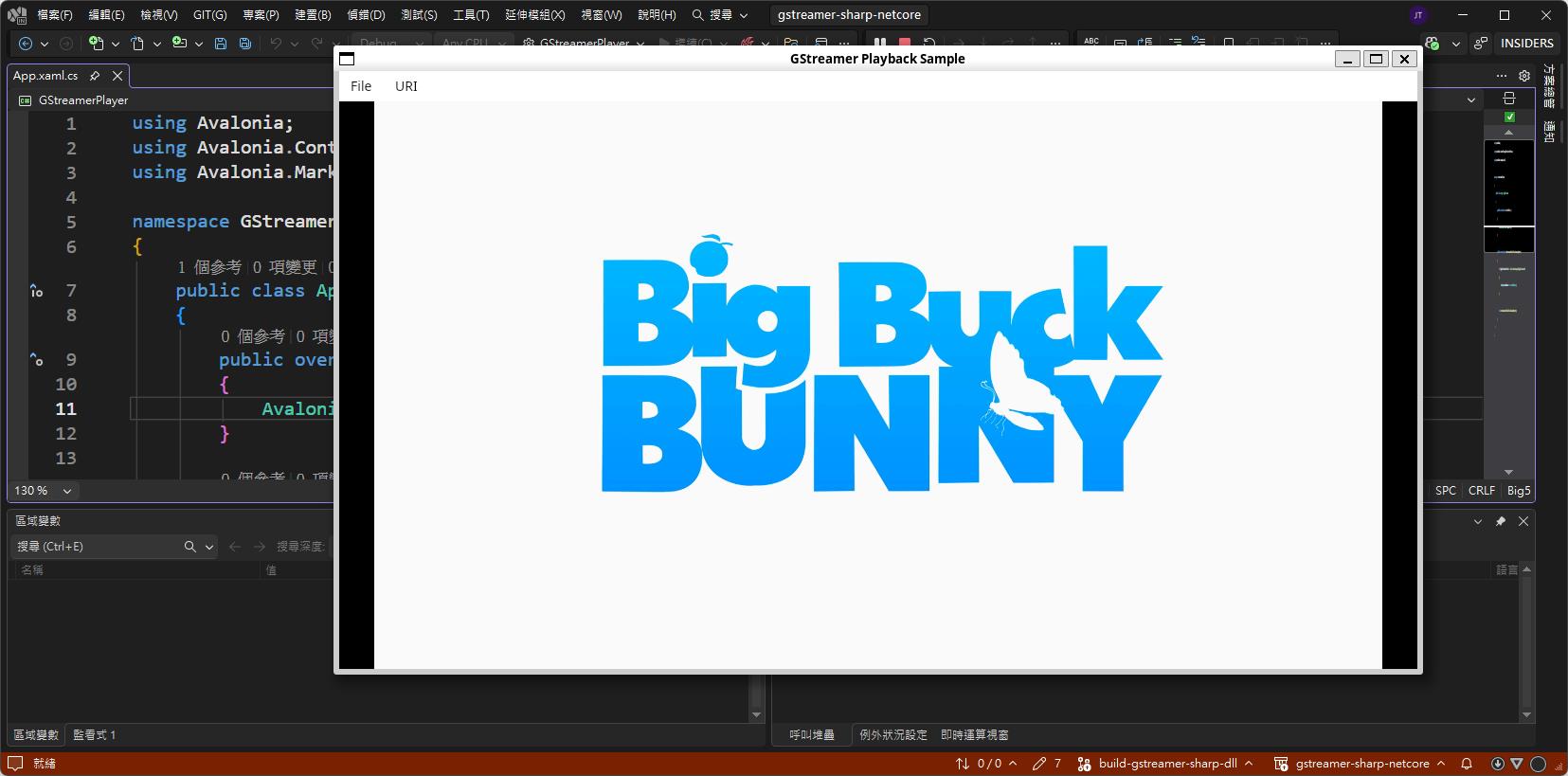 其中 "EP 30 - .NET + AvaloniaUI + GStreamer 跨平台" 裡,有展示了透過 WSL 在 Ubuntu 的環境中使用 GStreamerPlayer 的應用程式 (透過 .NET + Avalonia UI + GStreamer 的技術),來透過 GStreamer 的技術播放影片。