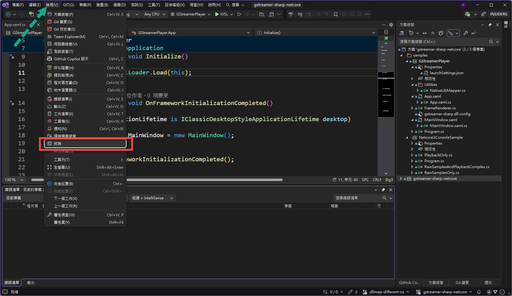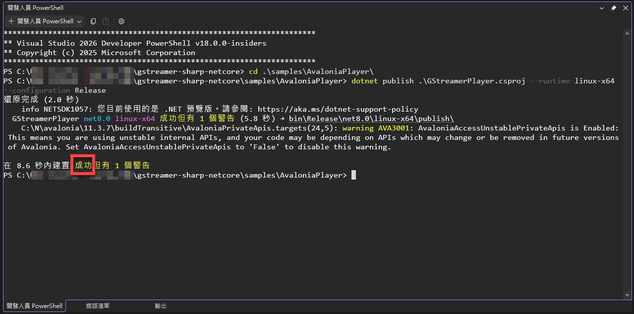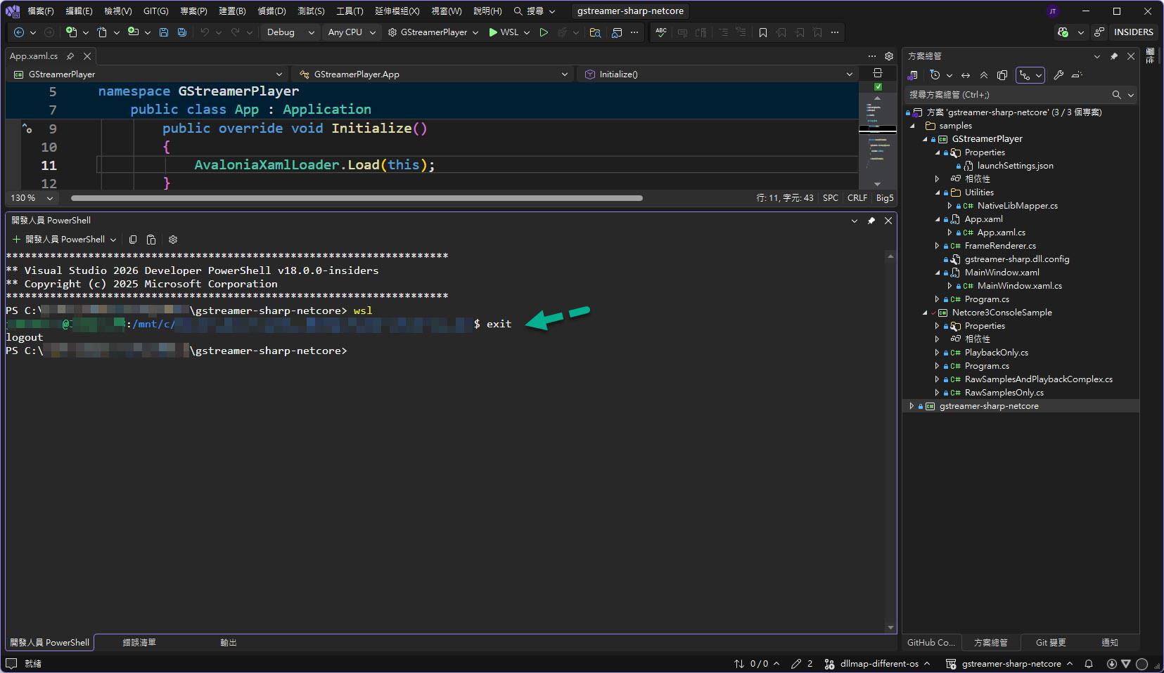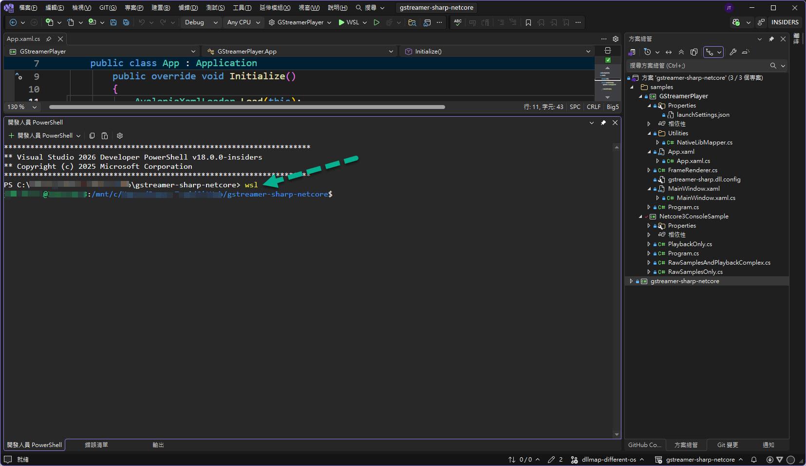 而在這邊是要在 Ubuntu 直接透過 dotnet GStreamerPlayer.dll 的方式來執行,不透過 Visual Studio 進行 WSL 的偵錯執行。