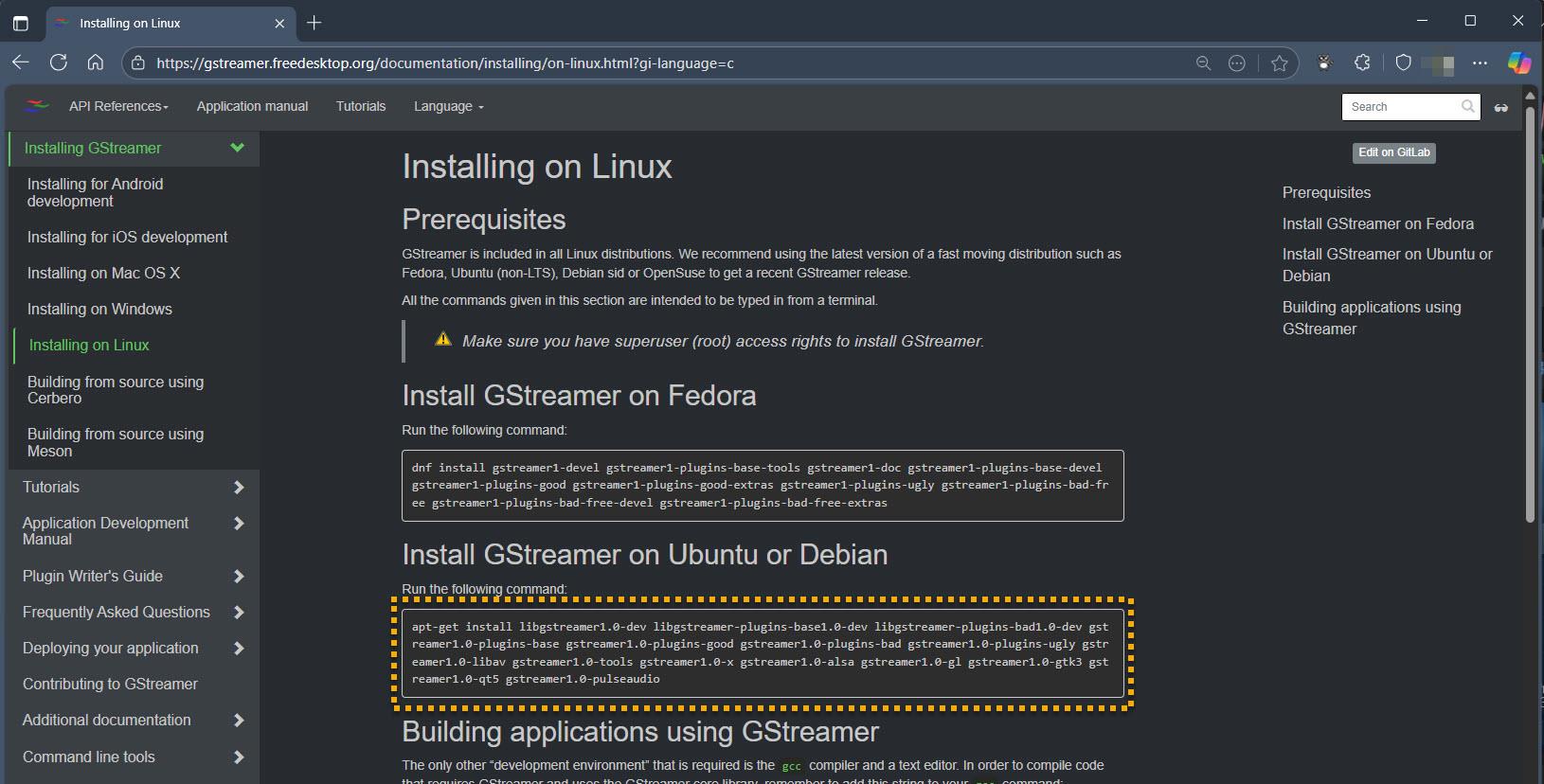 注意,上述指令跟 GStreamer 的官方說明文件中的套件多了 "libgstrtspserver-1.0-dev"。