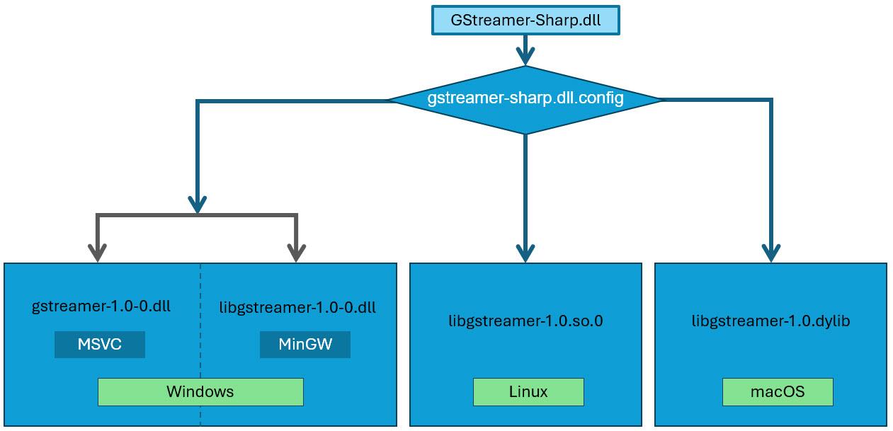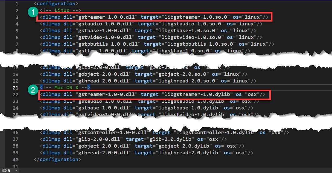 所以可能發現該平台的 GStreamer 的 Native Library 有異動時,就需手動調整 "gstreamer-sharp.dll.config" 的內容。
