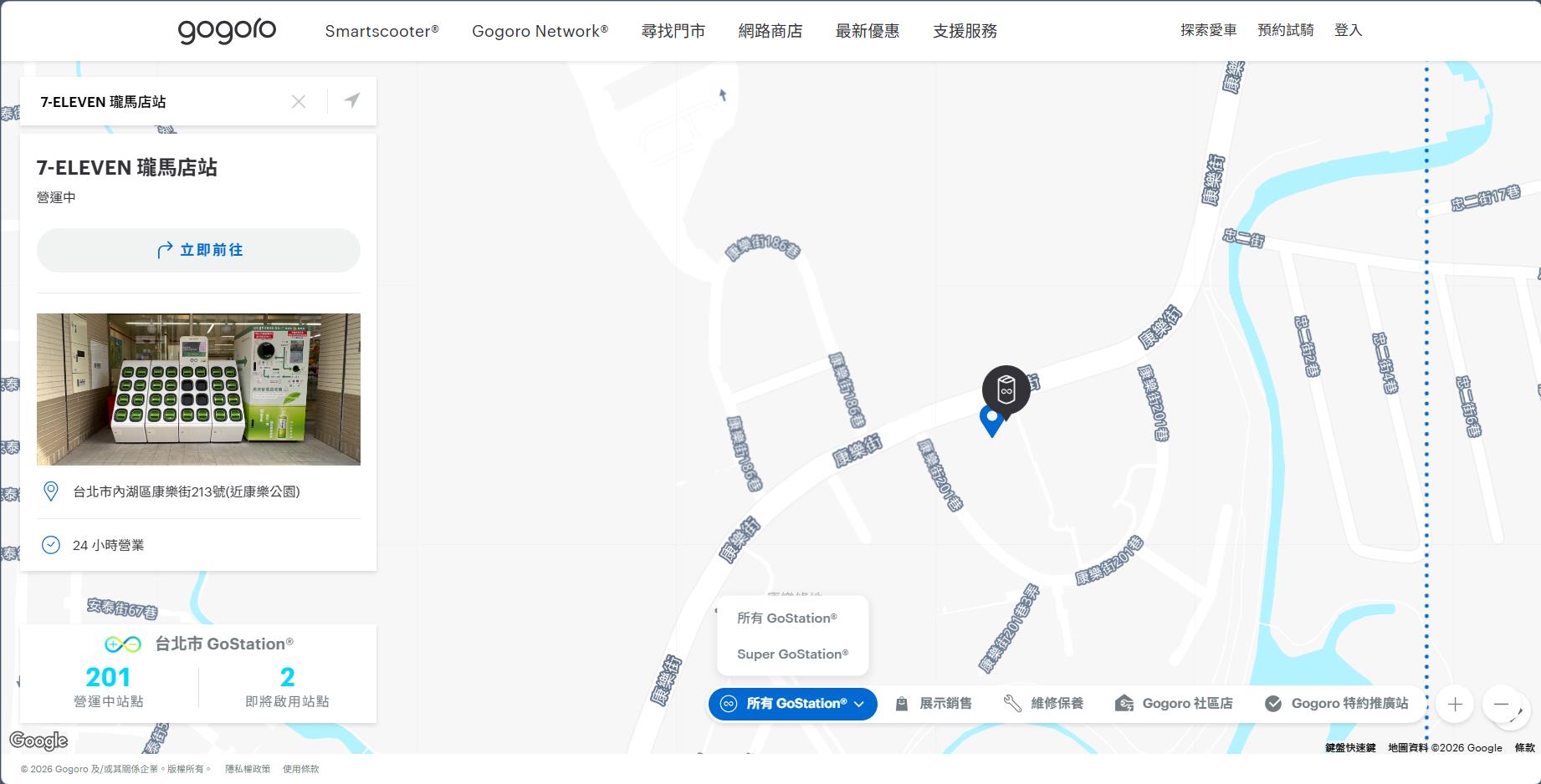 從 Gogoro 官網的 Findus 上也可以看到有此換電站: