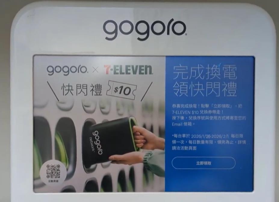 所以當你是 Gogoro 的車主並在此換電站換電的話,在換電完成時會在換電站的螢幕上顯示: