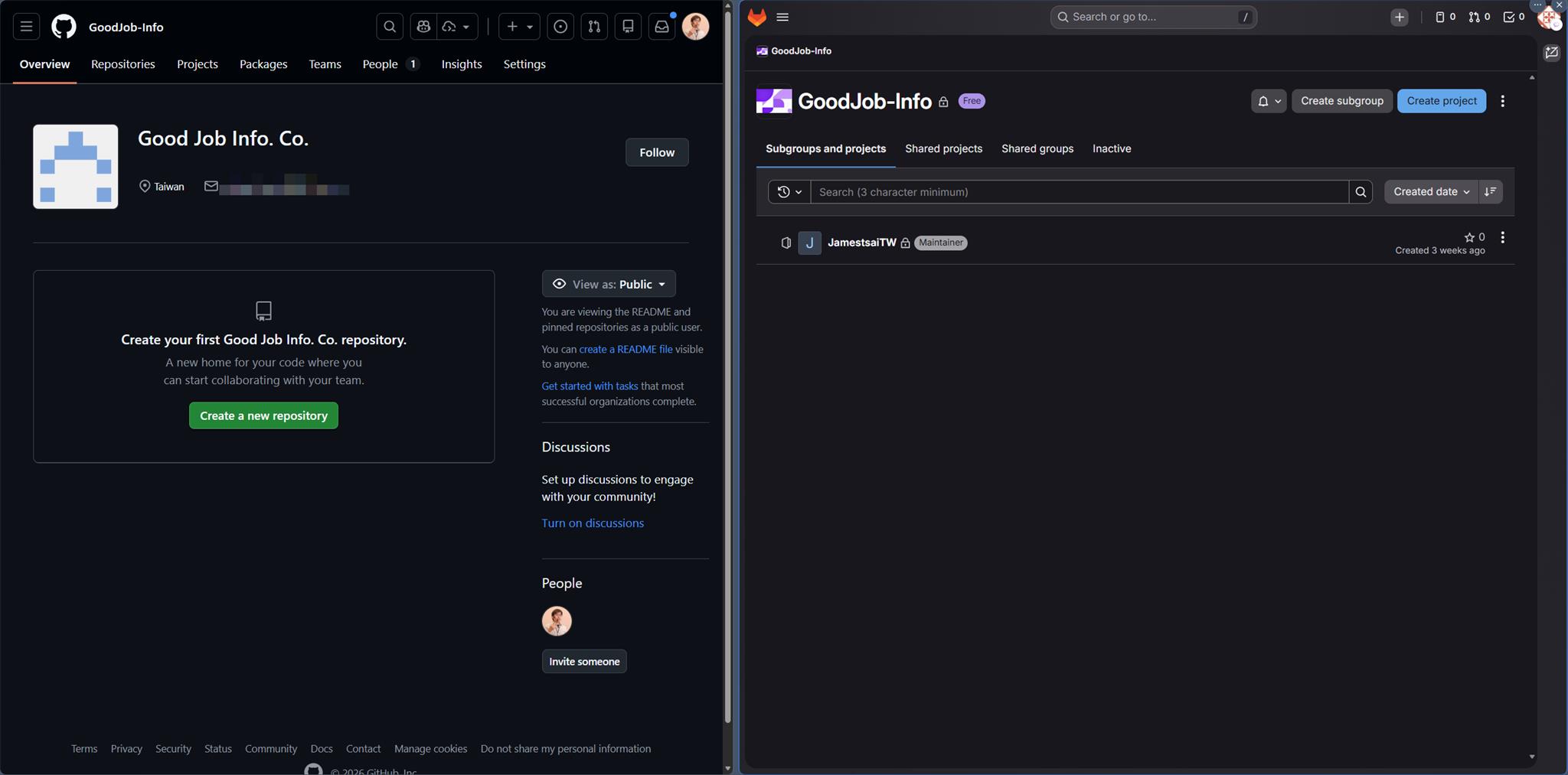 GitHub 的 Organizations 會是對照 GitLab 的 Groups