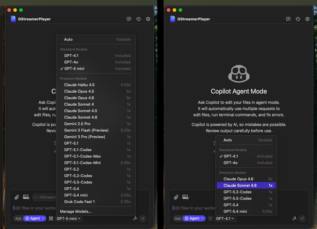 目前除了 Free 這個 Plan 以外,都提供額外透過支付 0.04 美金來獲得 1 次的 "Premium request"。另外,Student 的 Plan 能使用的 model 有較多的限制。