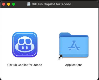 下載後,執行該 "GitHubCopilotForXcode.dmg" 就會看到這樣的傳統安裝 *.dmg 的畫面:
