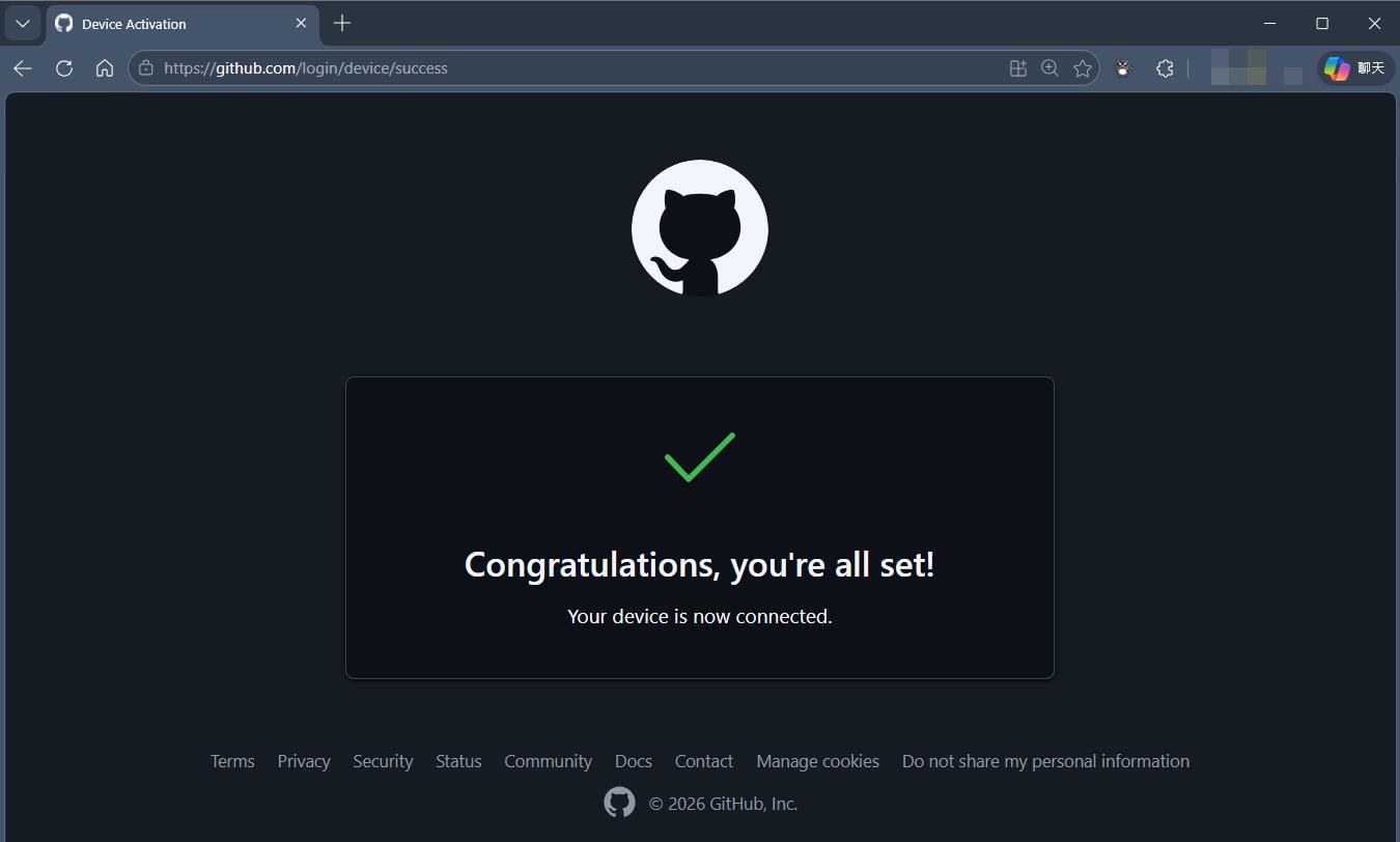 "Device code" 驗證成功的話就會再轉跳到這畫面: