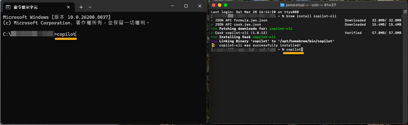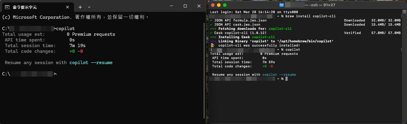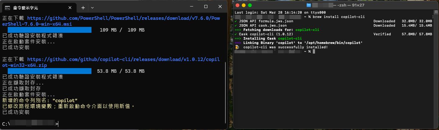 這邊就參考其介紹,同時安裝 Windows / macOS 的 GitHub Copilot CLI 來看看囉!