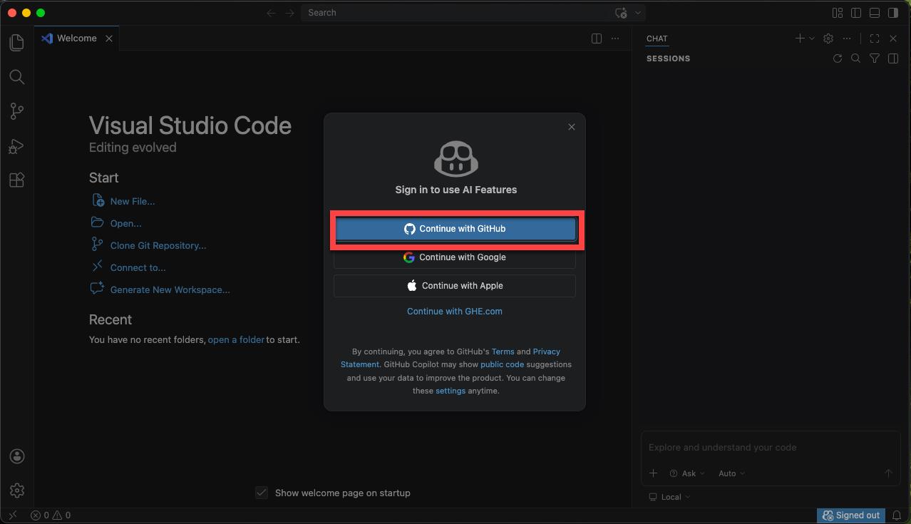 如果在 macOS 上當然也能透過 Visual Studio Code 使用 GitHub Copilot Chat: