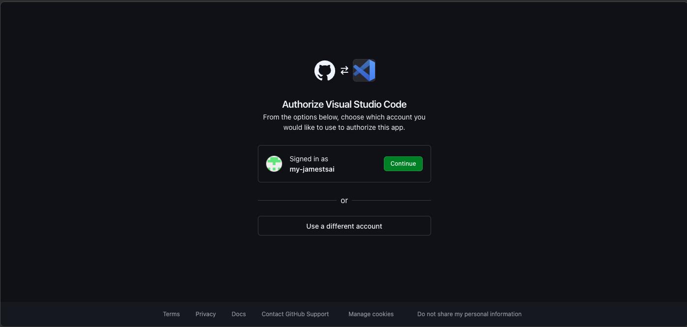 完成後則會出現此畫面,確認是否授權 GitHub Account 給 Visual Studio Code: