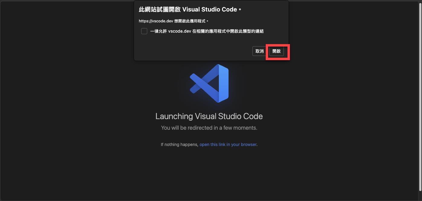 若是在 Edge 當中會跳出這個對話框,點選 "開啟":