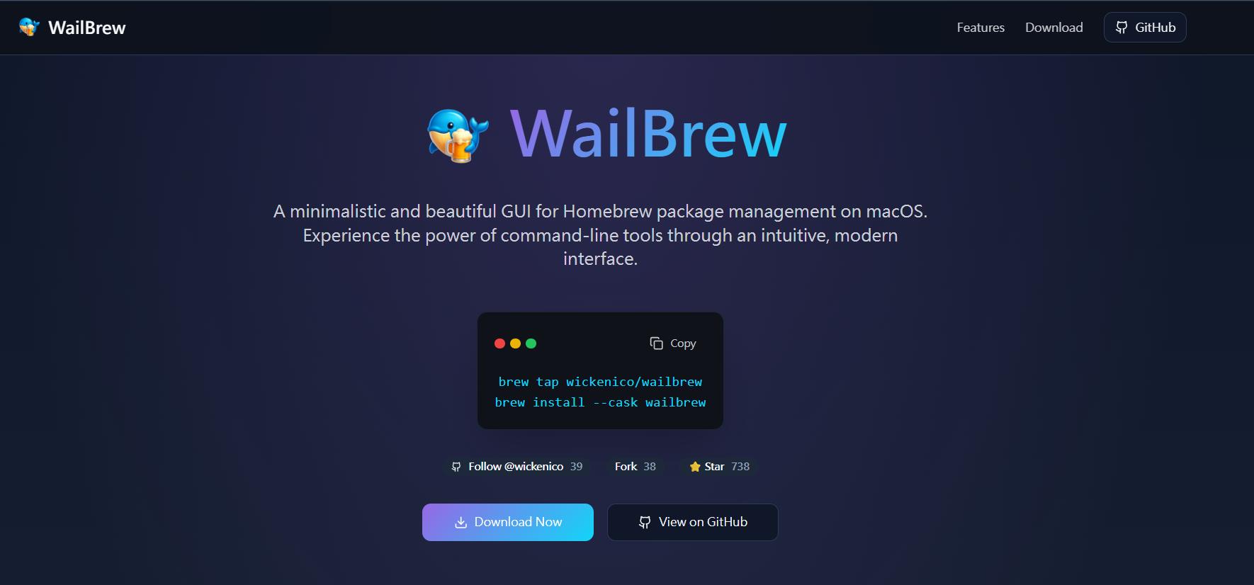 如果不是很能接受 Homebrew (或稱 brew) 只能在 "Terminal (終端機)" 當中透過指令操作 (CLI) 的話,可以試試看 WailBrew 這套軟體。