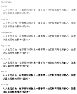 如果讀者們對於字型比較重視一點, 那麼思源黑體可能會是個更適合的選擇。如果你想看看這七個字型如何在不同的字型大小中呈現, 以及它們跟微軟正黑體的比較, 請參考以下這個 jsFiddle (你必須已經先安裝了 Noto 字型, 才能看到效果):