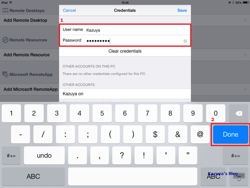 輸入要遠端連線的帳密,按下Done,如下圖所示: