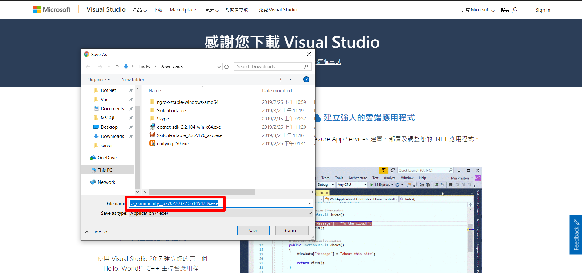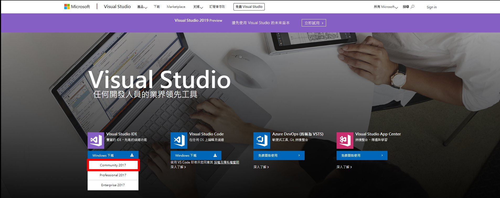 所以首先快到微軟的網站尋找 Visual Studio 2017 並且下載下來吧