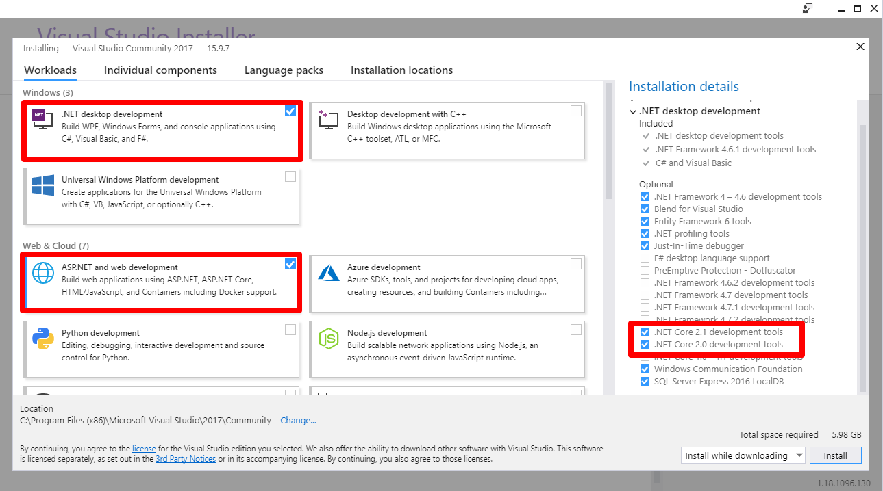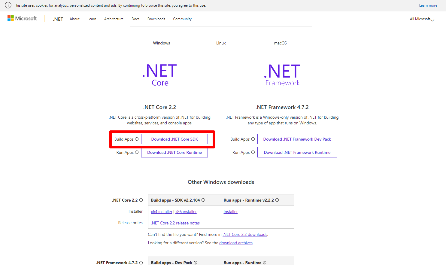 因為不確定大家Visual Studio裡面內建的.NET Core版本是不是最新的2.2版本,因此這邊也寫一下要安裝最新版的.NET Core,以免未來會跟套件版本不相容。