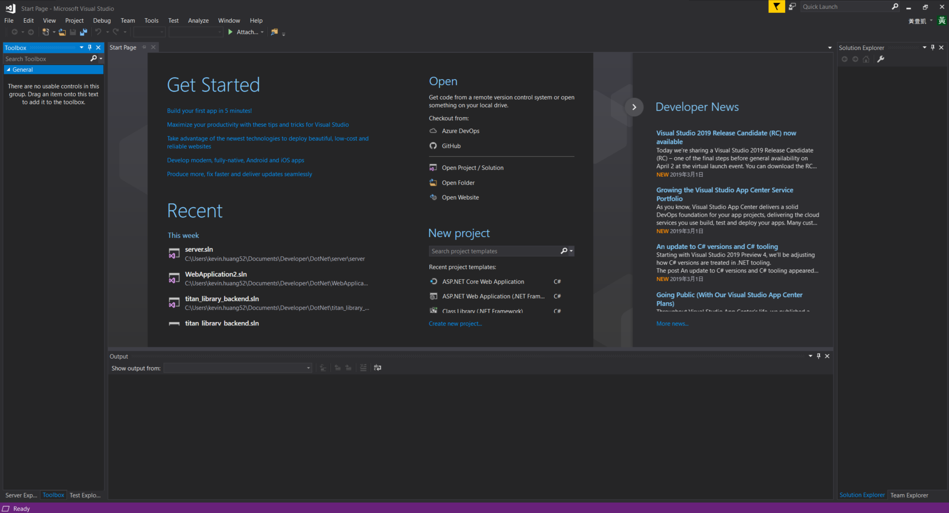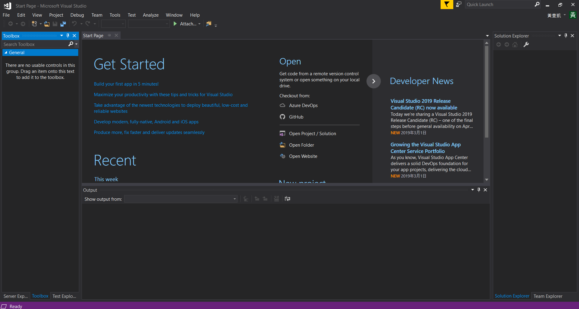 5.假設安裝完成,就可以打開Visual Studio準備開始使用囉!(我這邊沒有重新安裝一次,所以只提供我自己的Visual Studio畫面給大家參考參考)