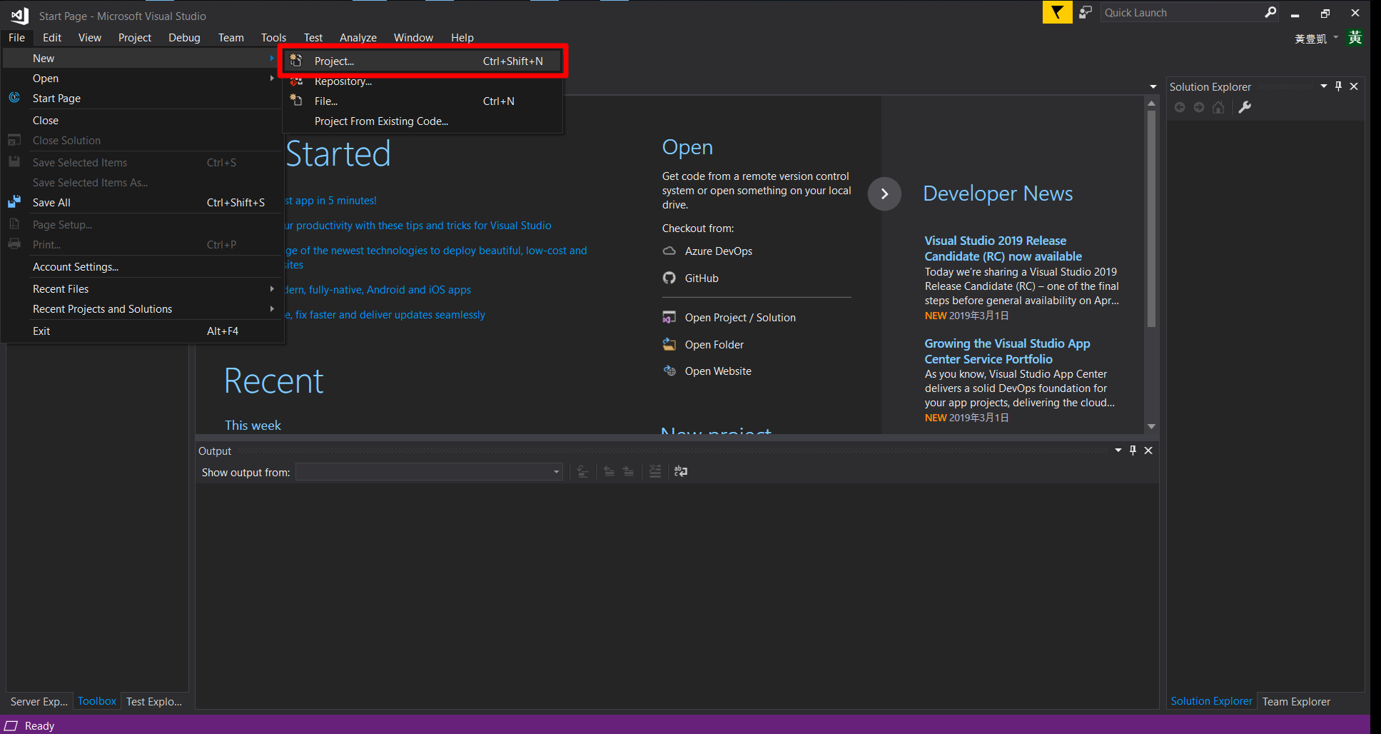 接下來要帶大家一起建立WEB API專案,我的Visual Studio介面是英文版的,如果有人是裝中文版的話,就自己對照相對位置囉!