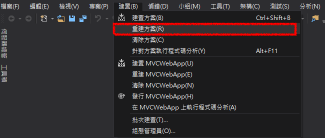 ★新增完之後,跟之前一樣重建rebuild 一下(這裡很重要哦!不然等一下會無法新增Controller)