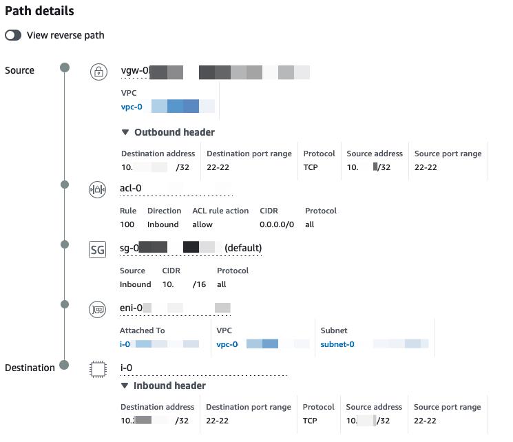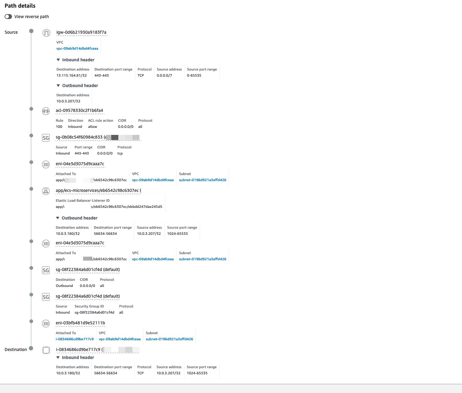 如果分析後發現路徑可以連通,除了能看到 Reachable 的指示外,也能點開 Path details 看到一路上會經過的各種服務