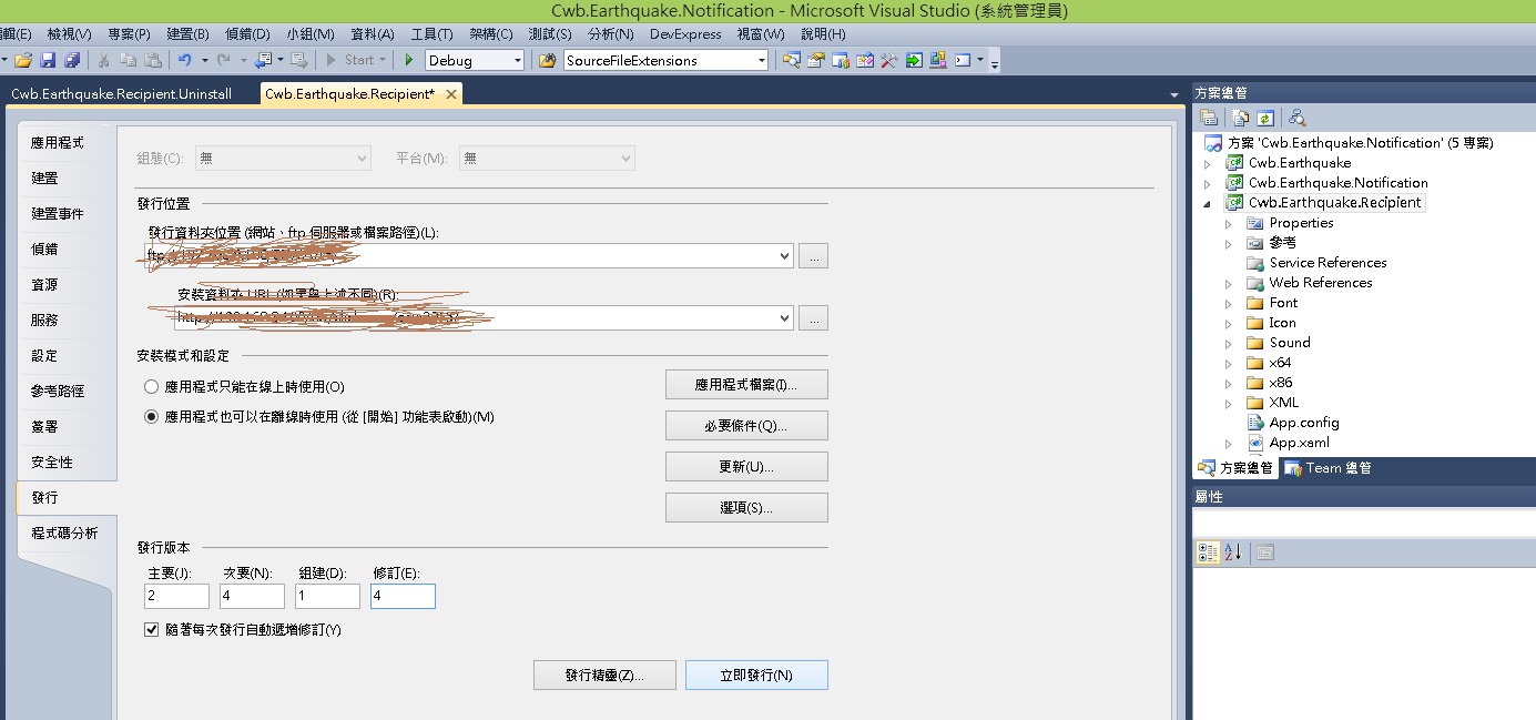 1.如下圖,當我發行時 使用滑鼠右鍵(對專案) -> 屬性 後指向到發行位置