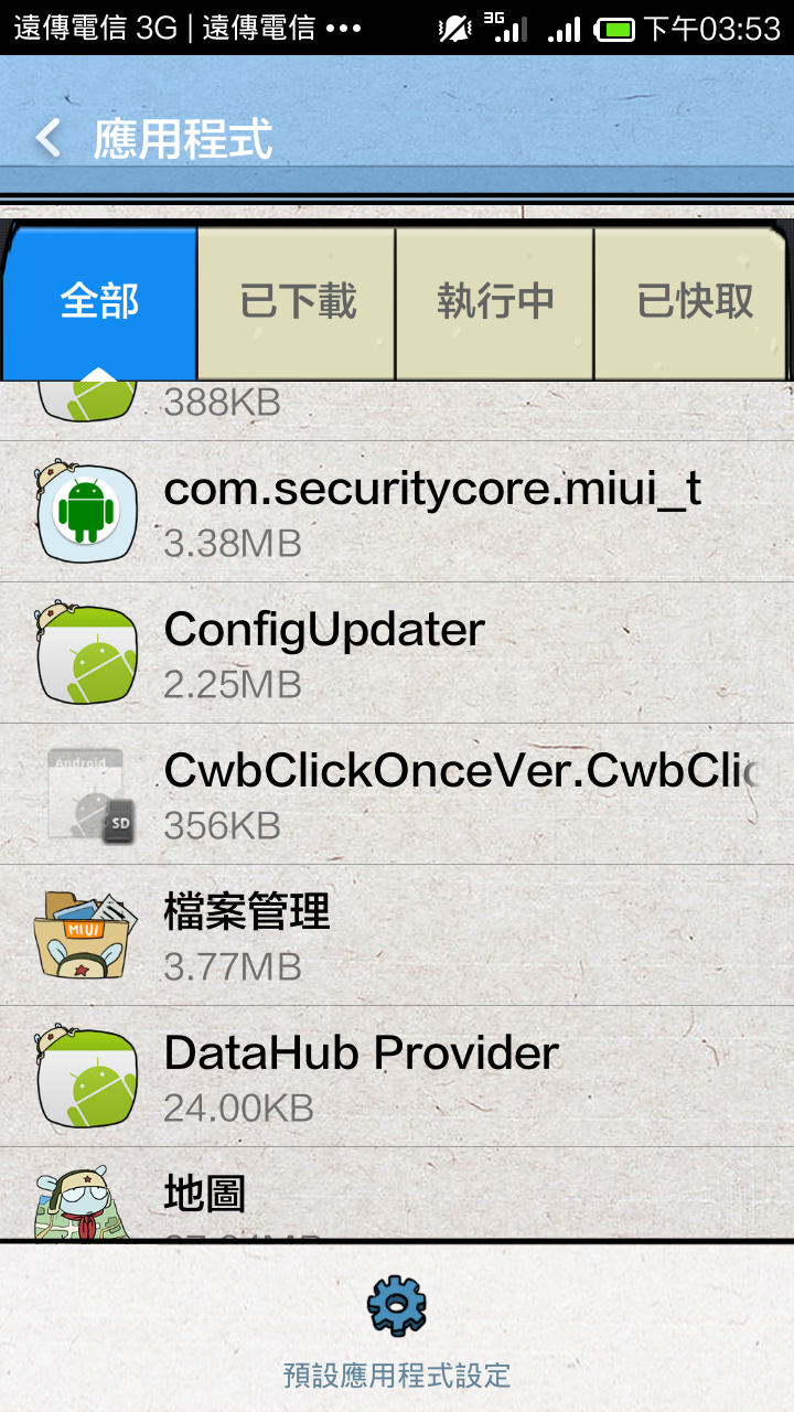 2. 然後我在我的手機上面找出該程式( ※刪除應用程式時,這個項目不會被刪到,所以要刪除它) 檔案名稱:CwbClickOnceVer.CwbClickOnceVer ....... 這個檔案,他的畫面會是灰色的= =。