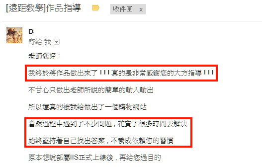 這是一位學員的來信 (2017/6/16) 他回家自學(觀看影片,遠距教學)